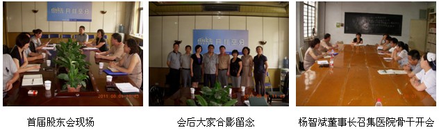 成立當(dāng)日上午,在開封空分集團(tuán)會(huì)議室召開了首屆股東會(huì)會(huì)議,會(huì)議由美寶國際集團(tuán)總裁楊智斌、財(cái)經(jīng)監(jiān)事李翠、醫(yī)療部主任陳永翀、河南區(qū)趙俊國總經(jīng)理,開封空分集團(tuán)公司副總經(jīng)理劉威、財(cái)務(wù)部長李建紅、空分醫(yī)院王文芳院長等參加。會(huì)議通過并宣布醫(yī)院董事會(huì)、監(jiān)事會(huì)成立,任命醫(yī)院管理班子,醫(yī)院即日正式宣布成立。醫(yī)院宣布成立后,緊接著召開了董事會(huì)、監(jiān)事會(huì)、醫(yī)院管理班子成員會(huì)議,就醫(yī)院未來發(fā)展方針做了進(jìn)一步明確,討論確立了以再生醫(yī)學(xué)技術(shù)為主導(dǎo)的“大??菩【C合”的辦院宗旨。會(huì)議同時(shí)還討論確立了醫(yī)院籌建資金使用規(guī)劃,并就醫(yī)院籌備工作提出了具體要求,成立由董事長牽頭,院長為執(zhí)行組長,合資各方相關(guān)人員組成的醫(yī)院籌備工作組;并要求盡快制定醫(yī)院發(fā)展計(jì)劃、編制財(cái)務(wù)預(yù)算、建立經(jīng)營管理制度等,同時(shí)強(qiáng)調(diào)重點(diǎn)安排好醫(yī)院的設(shè)備更新和基礎(chǔ)設(shè)施改造工作、規(guī)范提高臨床技術(shù)。下午,楊智斌董事長在醫(yī)院會(huì)議室召集醫(yī)院籌備工作組及相關(guān)業(yè)務(wù)骨干進(jìn)行座談,座談內(nèi)容主要涉及醫(yī)院的科室設(shè)置、人員配置、醫(yī)院總體布局和設(shè)備、基礎(chǔ)設(shè)施等方面所面臨的和急需解決的問題。最后強(qiáng)調(diào)醫(yī)院籌備工作組要盡快組織落實(shí)各項(xiàng)實(shí)施方案。