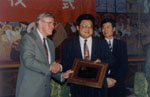 (1995年,美國全美燒傷受難者基金會(huì)主席哈里蓋納向徐榮祥頒發(fā)人道主義獎(jiǎng))