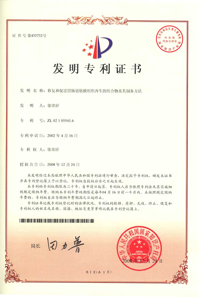 | 02773952.3 | 修復(fù)和促進(jìn)胃腸道粘膜組織再生的方法和物質(zhì)組合 | 查看 |