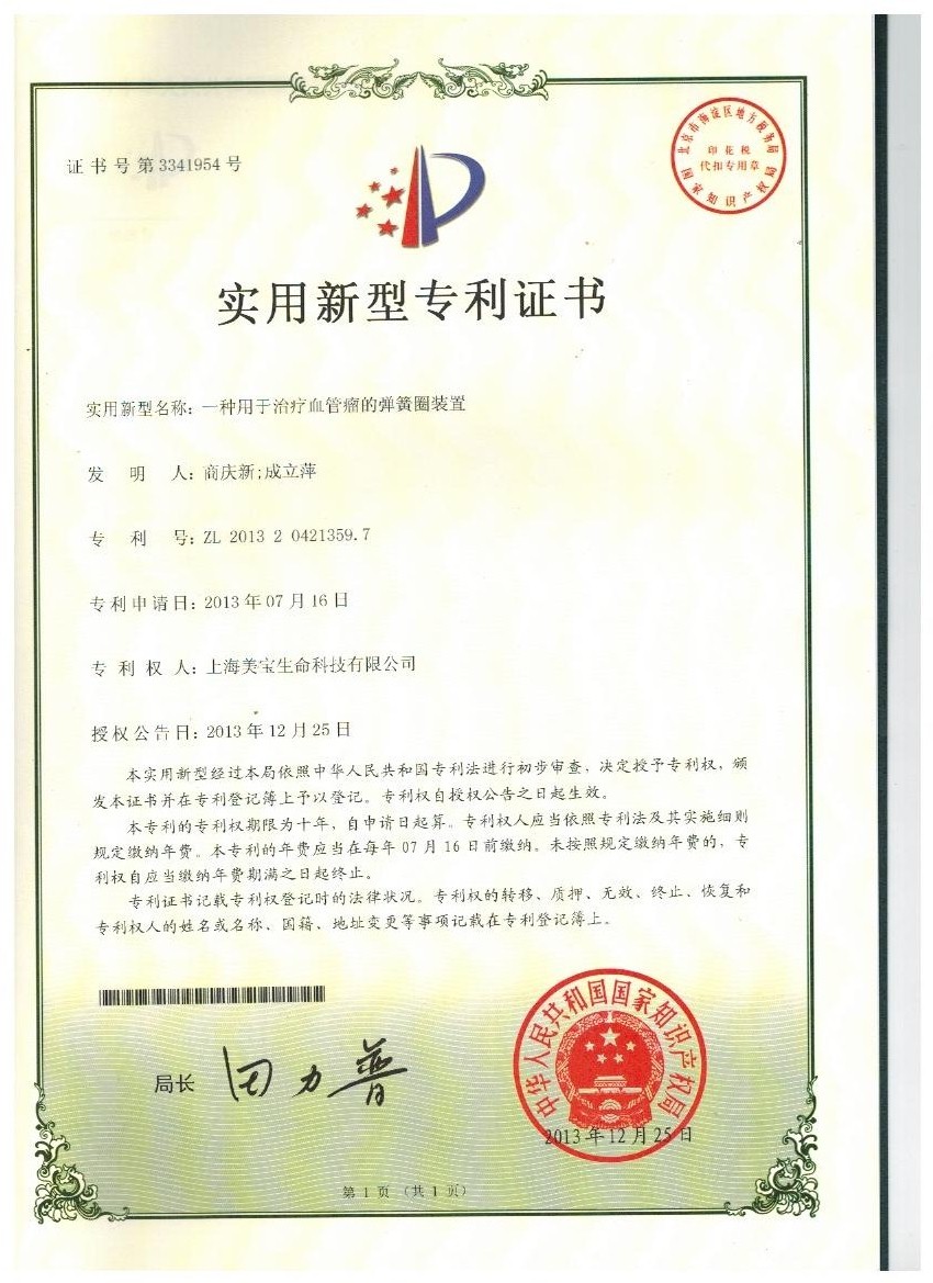 | ZL201320421359.7 | 一種用于治療血管瘤的彈簧裝置 | 查看 |