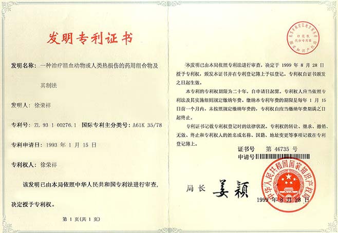 | 0606786(93402890.3) | 一種治療溫血?jiǎng)游锘蛉祟悷釗p傷的藥用組合物及其制法 | 查看 |