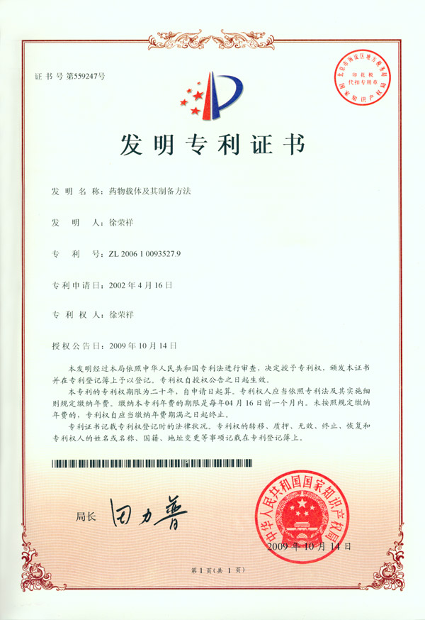 | ZL200610093527.9 | 藥物載體及其制備方法 | 查看 |
