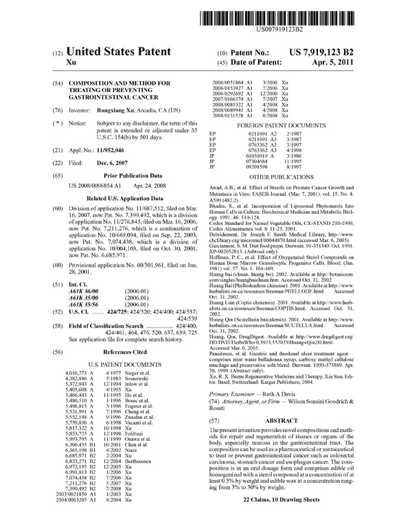 | 7919123 B2 | 治療與預(yù)防胃腸道癌癥方法 | 查看 |