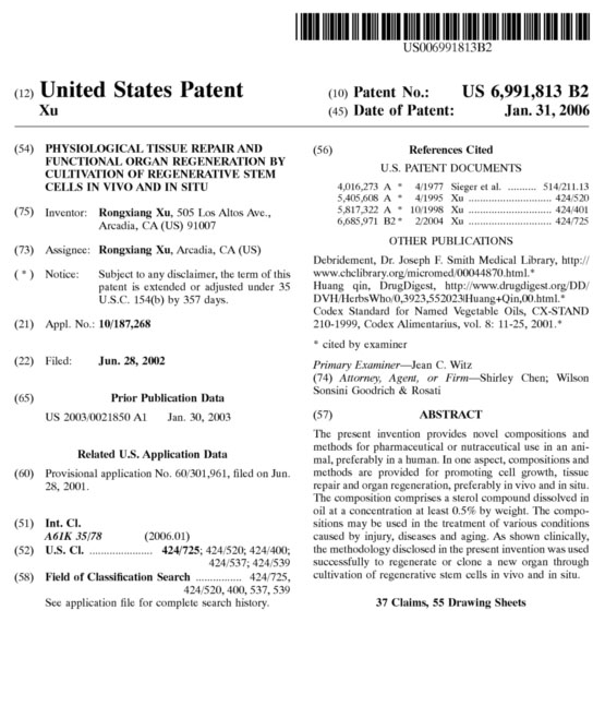 | 6991813 B2 | 通過(guò)體內(nèi)和原位進(jìn)行干細(xì)胞的培養(yǎng)來(lái)修復(fù)再生生理性的組織和功能性的器官 | 查看 |